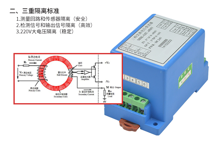 三相電壓變送器是一種能将被測三相電壓轉換成按線性比例輸出直流電壓或直流電流的儀器。